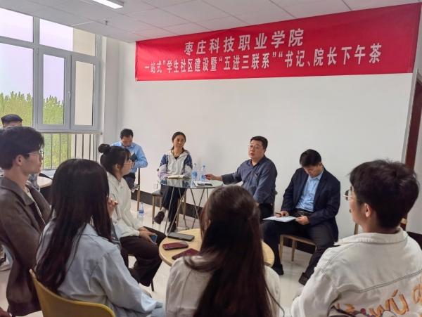 为积极开展“一站式”学生社区建设,落实立德树人根本任务,深入实施“五进三联系”育人工作,4月11日下午,由枣庄科技职业学院学生工作处主办、建筑工程学院承办的“一站式”学生社区建设暨“五进三联系”“书记、院长下午茶”活动在学校学术交流中心602活动室举行,建筑工程学院党总支书记贾佳,学生工作处副处长张静,建筑工程学院副院长张朋、团总支书记(学生科长)刘德海及部分辅导员、学生代表参加活动。