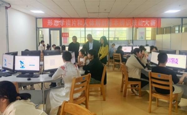本次校内选拔赛由教务科、学生科主办,基础医学教研室协办,是为了选拔学生进入更高的平台——全国基础医学形态学实验室主任联席会将举行的国赛做准备。高等医学院校大学生形态学读片和人体解剖标本辨识技能大赛是贯彻教育部“数字变革与教育未来”的战略部署,结合医学教育规律,针对形态学实验课的培养目标,促进形态学教学数字化转型和课程“三基三严”教学质量提升而举办的大赛。
