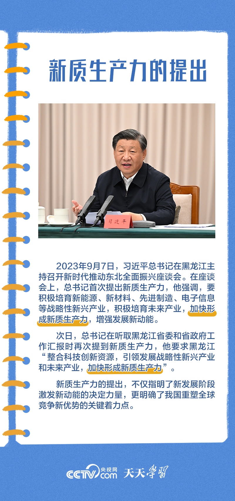 天天学习2023年9月,习近平总书记在黑龙江考察调研时首次提出新质生产力。此后,新质生产力被正式写入中央文件。在今年1月中央政治局集体学习时,总书记对其作出了系统全面阐释,这一原创性概念成为国内外高度关注的中国推进高质量发展的重要着力点。