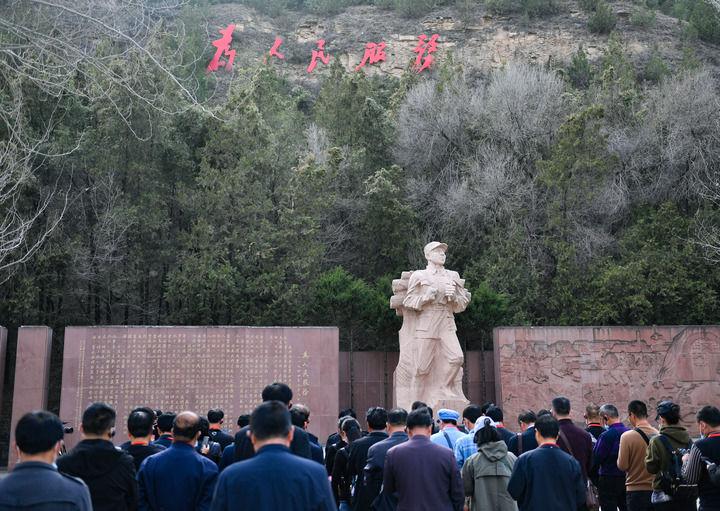 党员干部在延安市张思德纪念广场进行现场教学活动(资料照片)。新华社记者 张博文 摄