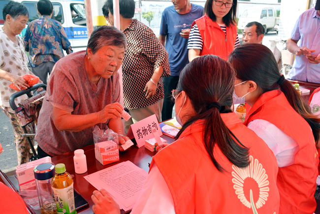 活动中,义诊团在前辛章村新时代文明实践站为前来诊治的村民耐心讲解了药物的使用、常见病的预防和治疗等知识,让村民了解自己的身体状况,帮助村民养成健康的生活方式;为村民提供“一对一”问诊,免费量血压、血糖,发放了部分常用抗感冒、中药等药品,实现了在家门口就享受到的医疗服务,提升了患者就医体验,增强了群众的获得感和幸福感。