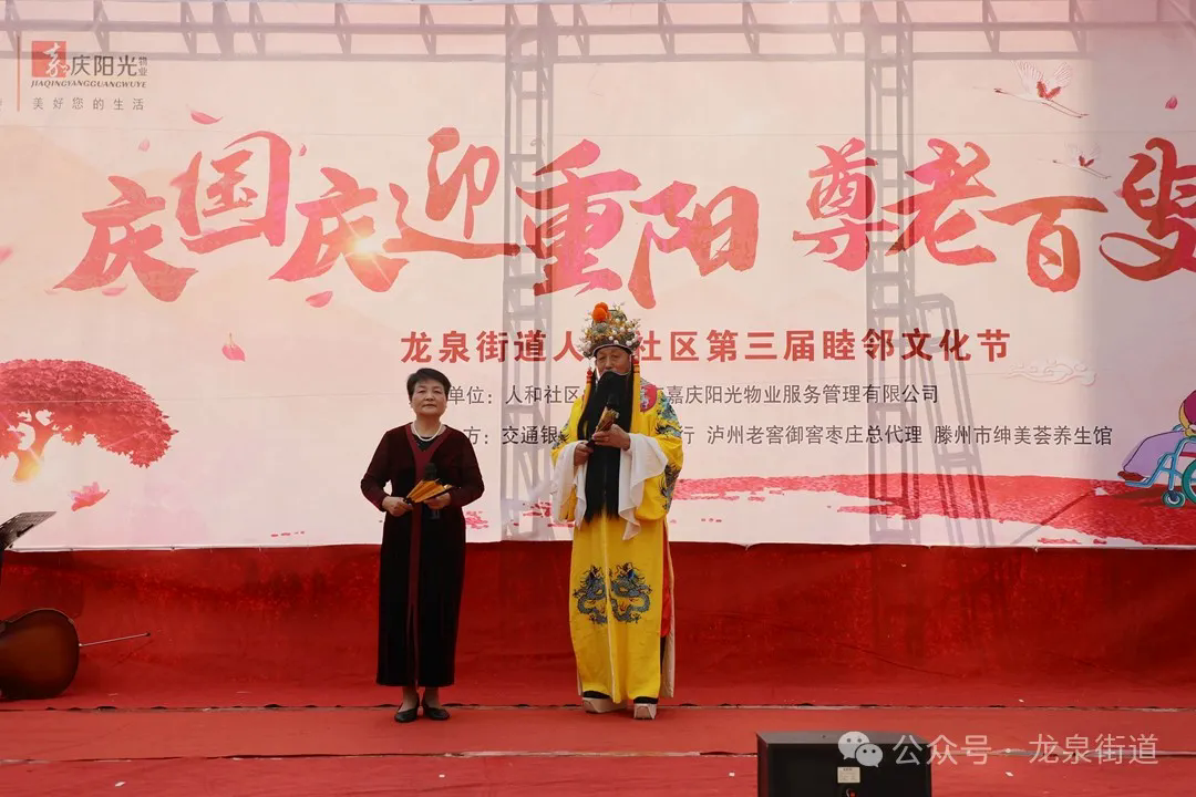 金秋送爽菊花香,秋高叶落又重阳。为弘扬中华民族尊老、敬老、爱老、助老的传统美德,树立孝老之风,营造欢乐祥和的节日氛围,10月10日上午,龙泉街道人和社区举办第三届睦邻文化节暨第六届“庆国庆迎重阳 尊老百叟宴”活动。