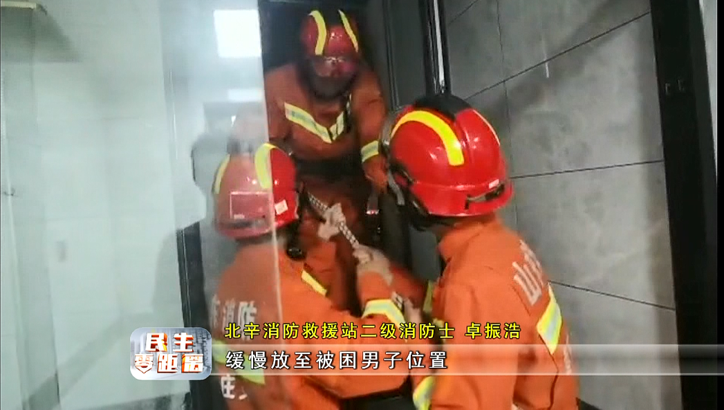 现场情况十分紧急,考虑到由于平台空间狭小,稍有不慎就会发生坠楼危险.经过近10分钟的紧张救助,被困男子成功救下。