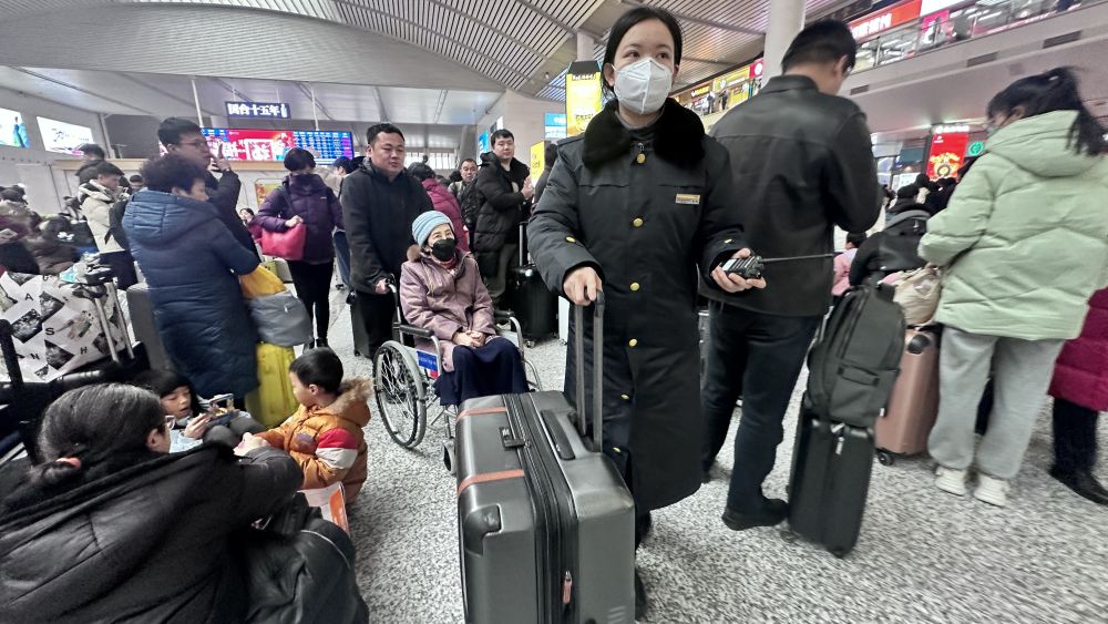 济南西站工作人员引导旅客前往检票窗口。新华社记者 张钟仁 摄