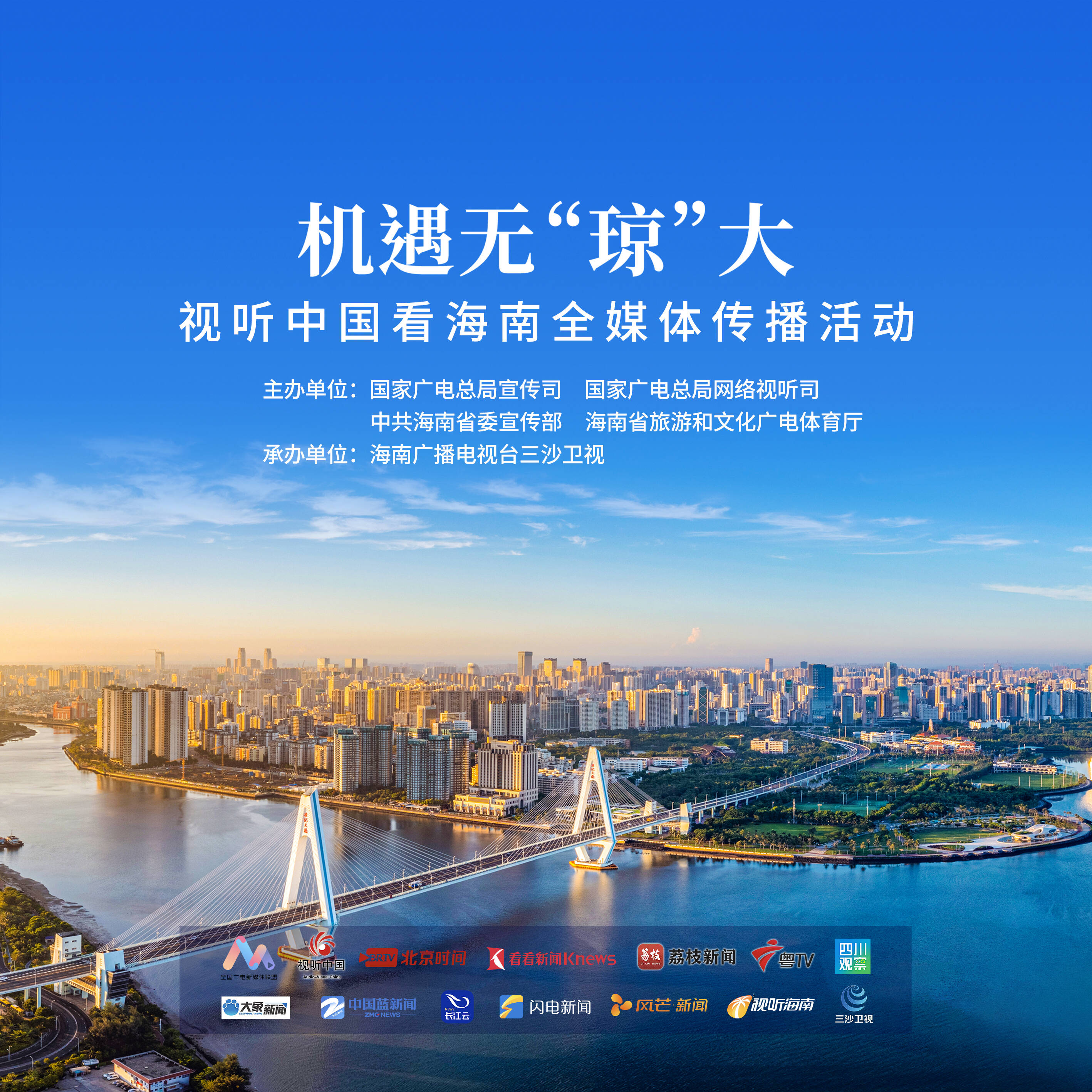 由国家广电总局宣传司、国家广电总局网络视听司、中共海南省委宣传部、海南省旅游和文化广电体育厅联合主办,海南广播电视台三沙卫视承办的“机遇无‘琼’大——视听中国看海南”全媒体传播活动11月18日正式启动,将在5天时间,通过“视听中国”全媒体传播矩阵,让全国人民听见更澎湃的开放之声,看见更美好的海南画卷。
