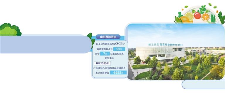 一粒种,一颗“芯”,一个产业。截至2025年,寿光市已连续举办22届蔬菜种业博览会,累计参展单位6955家,展示国内外品种6.5万多个,推选出优良品种1200多个,成为我国设施蔬菜品种专业化平台品牌。