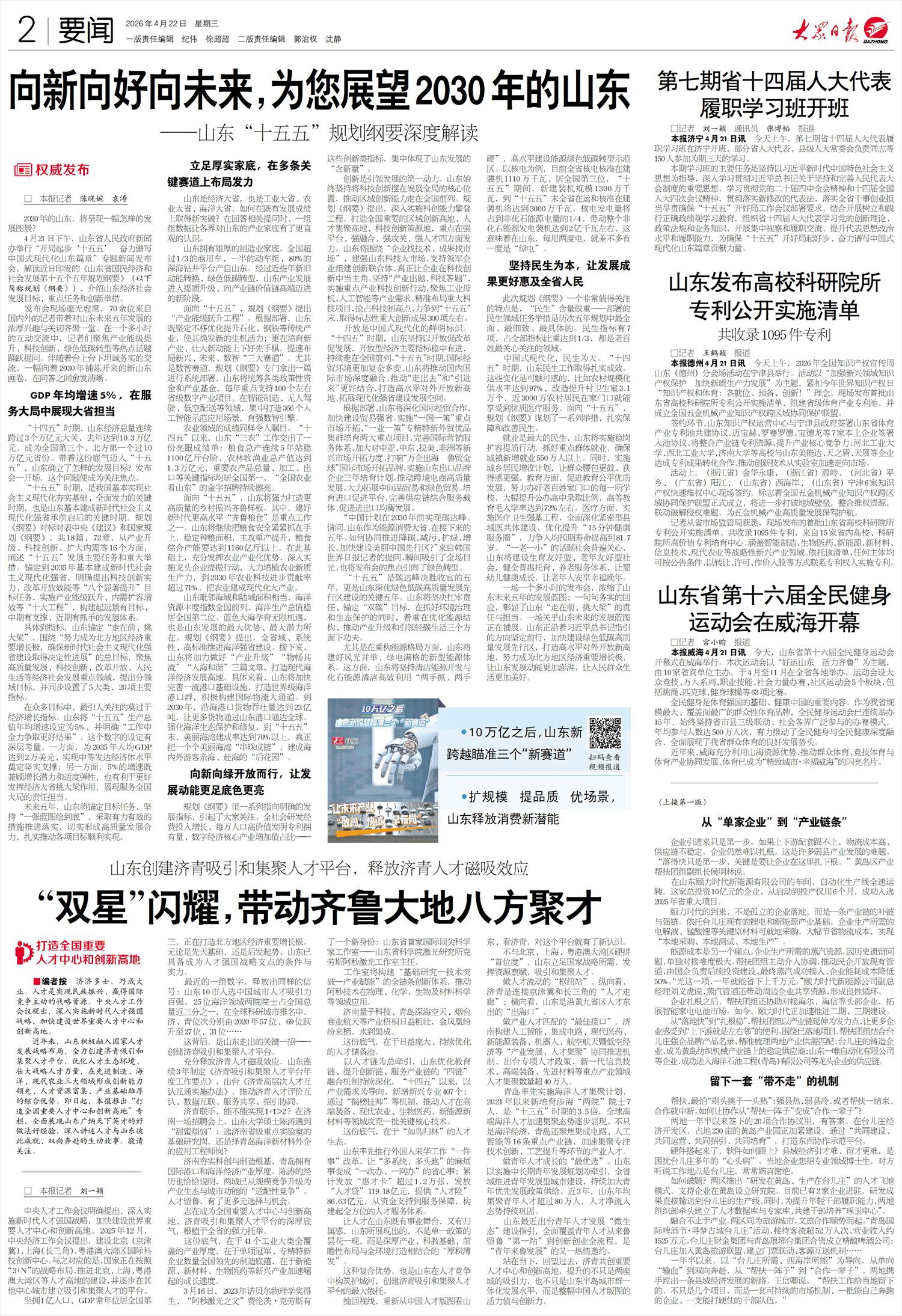 以人才链为总牵引,山东优化教育链、提升创新链、服务产业链的“四链”融合机制持续深化,“十四五”以来,以产业需求为导向,新增新兴专业407个;通过“揭榜挂帅”等机制,推动人才在高端装备、现代农业、生物医药、新能源新材料等领域攻克一批关键核心技术。