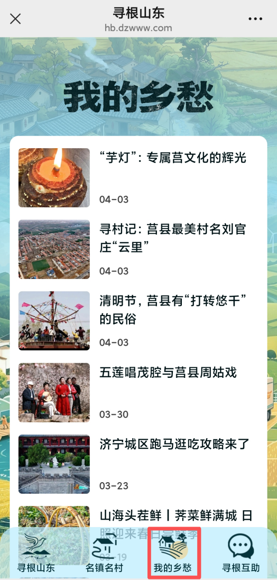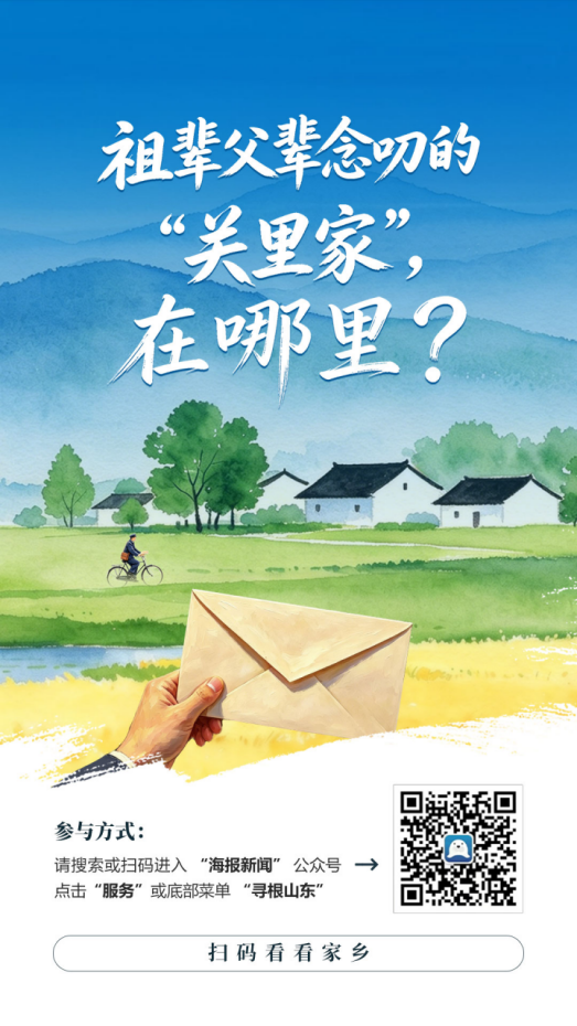 即刻起打开“海报新闻”公众号 ,点击菜单栏“服务—寻根山东”,即可共撰村史、寄托乡愁、互助寻根,让漂泊的乡愁在云端找到归宿。每月上传有效资料最多的前50名网友还有现金奖励!