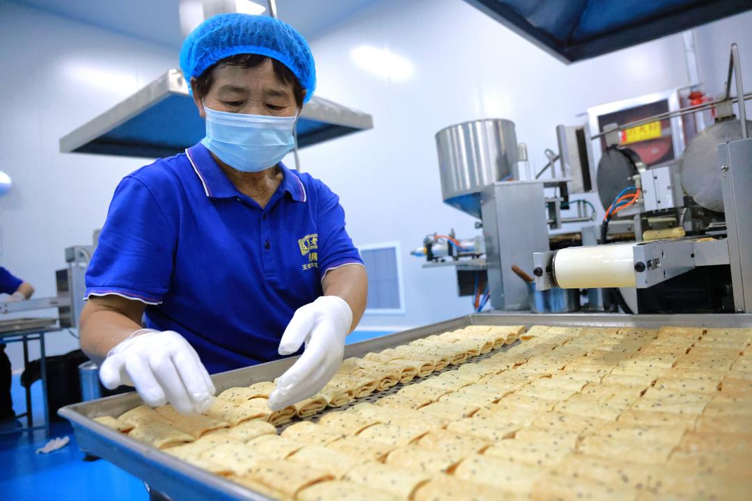 口碑传开,石榴深加工产品市场就打开了。在园区一隅,56台多功能烘焙机正在试生产。只见面糊在鏊子上旋转几圈,加热几分钟就形成了薄如纸的煎饼。2023年底,王老吉大健康产业园开始研发石榴酵素煎饼。“石榴原汁初步发酵是酒,二次发酵是醋,三次发酵才是酵素。因此,酵素更珍贵。”副总经理李永帅说,石榴酵素煎饼已经批量生产。初步测算,效益有望超过石榴饮品。