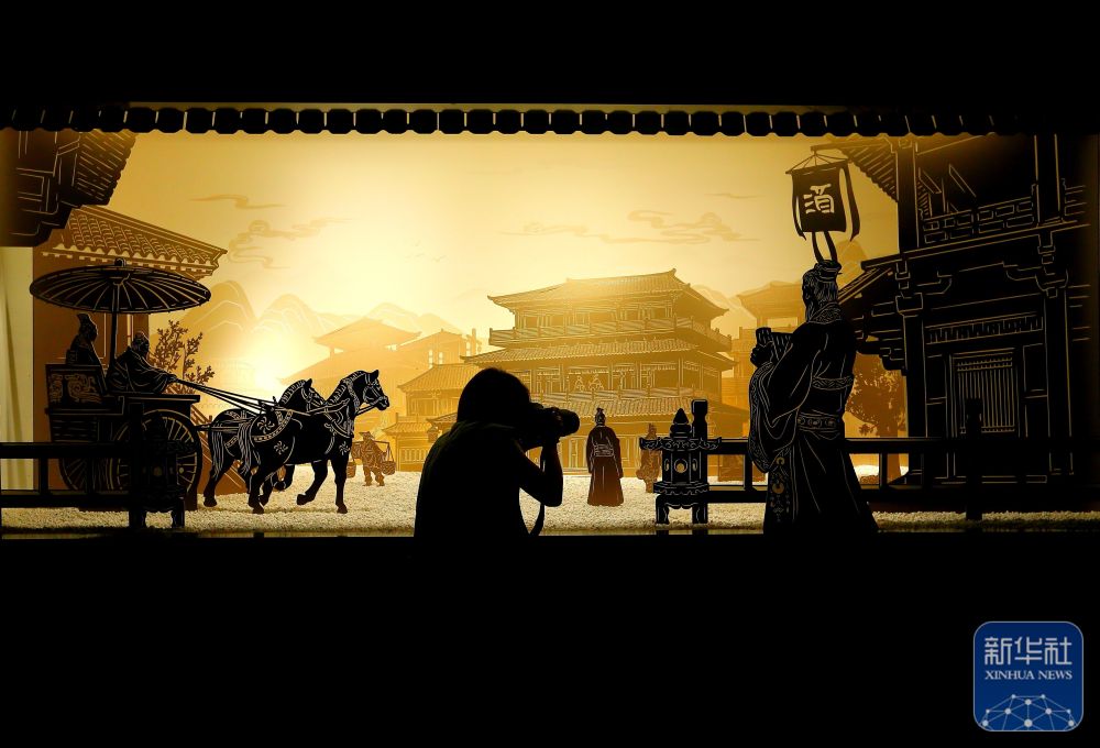 ↑9月21日,游客在山东省滕州市汉画像石馆参观拍摄。