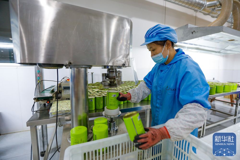 ↑9月21日,在山东滕州传化公路港内,一家茶叶企业的员工在包装茶叶。