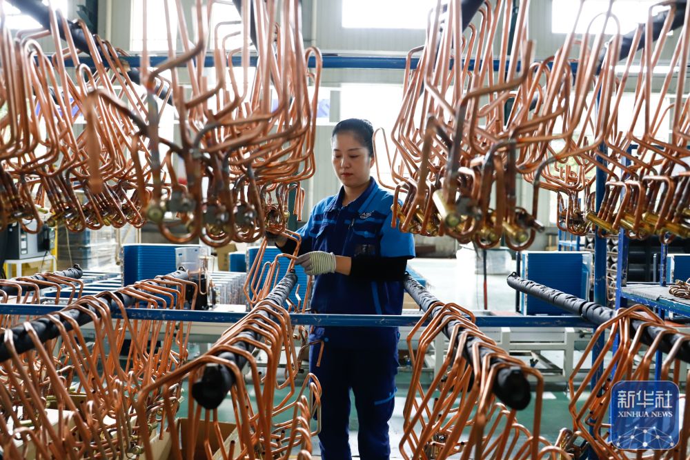 ↑9月21日,在山东省滕州市中科蓝天科技有限公司,工人正在分拣四通阀。