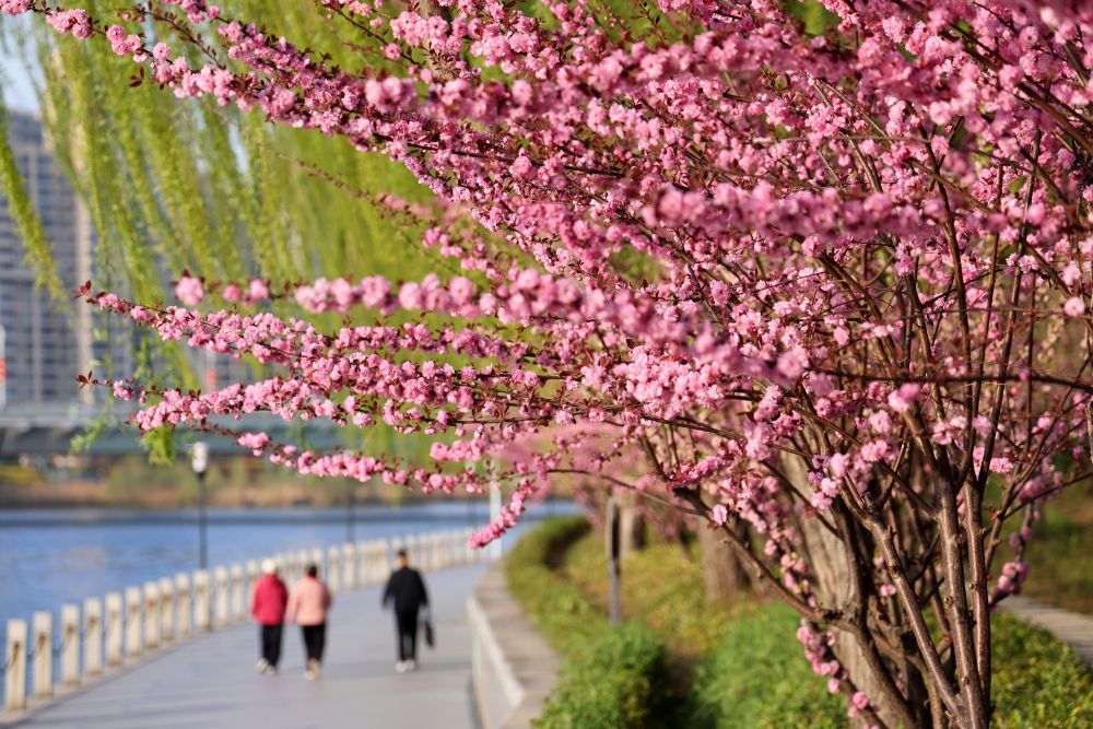 随着春日气温回暖,滕州市荆河岸边春意盎然,花红柳绿,市民在岸边休闲健身,尽情感受春日的惬意时光。谢经岭 摄