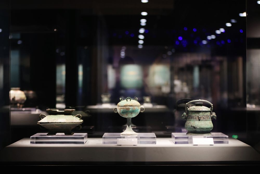 滕州博物馆展出的庄里西遗址(位于滕州市姜屯镇庄里西村)出土的精美青铜器。该遗址出土西周、东周时期大量珍贵文物,如鬲、鼎、簋、卣、成套编钟等青铜器以及编磬、玉器等精美器物,对于研究古滕国社会文化生活具有重要价值。渠青 摄