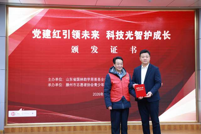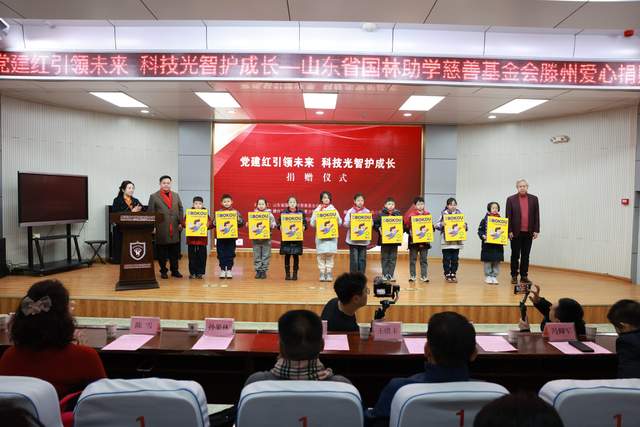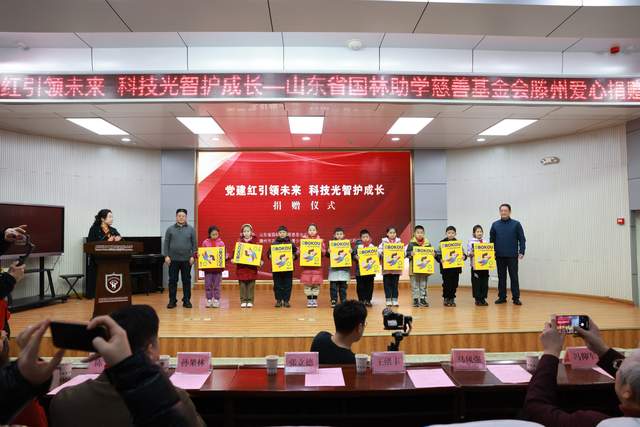 【滕州在线·学在滕州 1月26日讯】 1月26日 ,“党建红引领未来 科技光智护成长”山东省国林助学慈善基金会爱心捐赠仪式在市文化路实验小学一楼多功能厅圆满举行。本次活动由山东省国林助学慈善基金会主办,滕州市志愿者协会青少年工作委员会与该校联合承办,以党建引领公益事业,用实际行动为青少年成长赋能,践行教育帮扶的社会责任,凝聚起各界关爱基础教育的温暖力量。