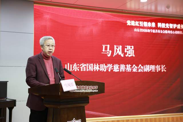 随后,山东省国林助学慈善基金会副理事长马风强发表致辞。他详细阐释了基金会“公益为民、助力成长”的初心使命,介绍了基金会以党建为引领、聚焦青少年成长需求的公益理念,并表示将以此次捐赠为契机,持续凝聚社会各界爱心力量,不断拓宽公益助学覆盖面,为更多青少年的健康成长保驾护航。齐鲁名校长,滕州市文化路实验小学党支部书记、校长刘冬梅介绍了学校的办学理念、特色育人模式及未来发展规划,表达了对公益力量支持学校发展的殷切期待,以及办好教育、培育栋梁的坚定决心。