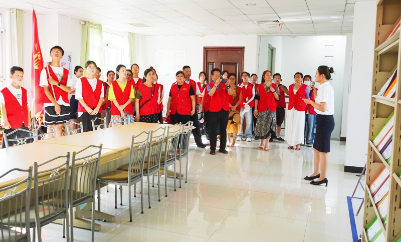 7 月 31 日,在山东省枣庄市滕州市志愿者理事长王春元、刘玉龙老师的带领40多名青鸟计划大学生志愿者,到滕州市中心人民医院参观学习。市中心人民医院党委委员、纪检监察室主任李文、团委书记李振陪同活动。