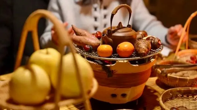 如今,三五好友围炉而坐,炉子上沸腾着茶水,炉边的橘子、板栗、棉花糖冒着热气,旁边桌子上摆几盘精致小点。在这样的氛围中,人们一边品茶、一边闲话。是不是和古代文人墨客鼓瑟吹笙、吟诗作赋的场景,颇为相似?