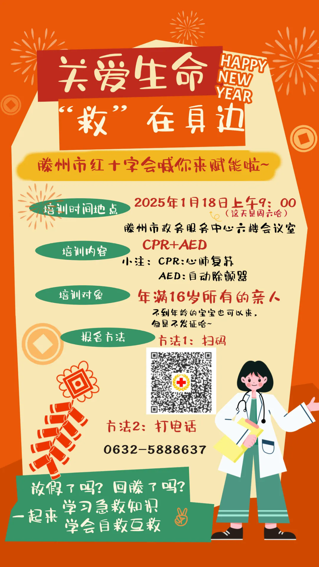 不论家庭突发状况还是公共场所意外,想要沉着应对,手里得有技术。黄金时刻,分秒必争!CPR+AED的应急救护培训即将开启,在这里,你将掌握关键技能,为生命筑牢防线。别等意外发生,快来加入,让自己成为生命的守护者!
