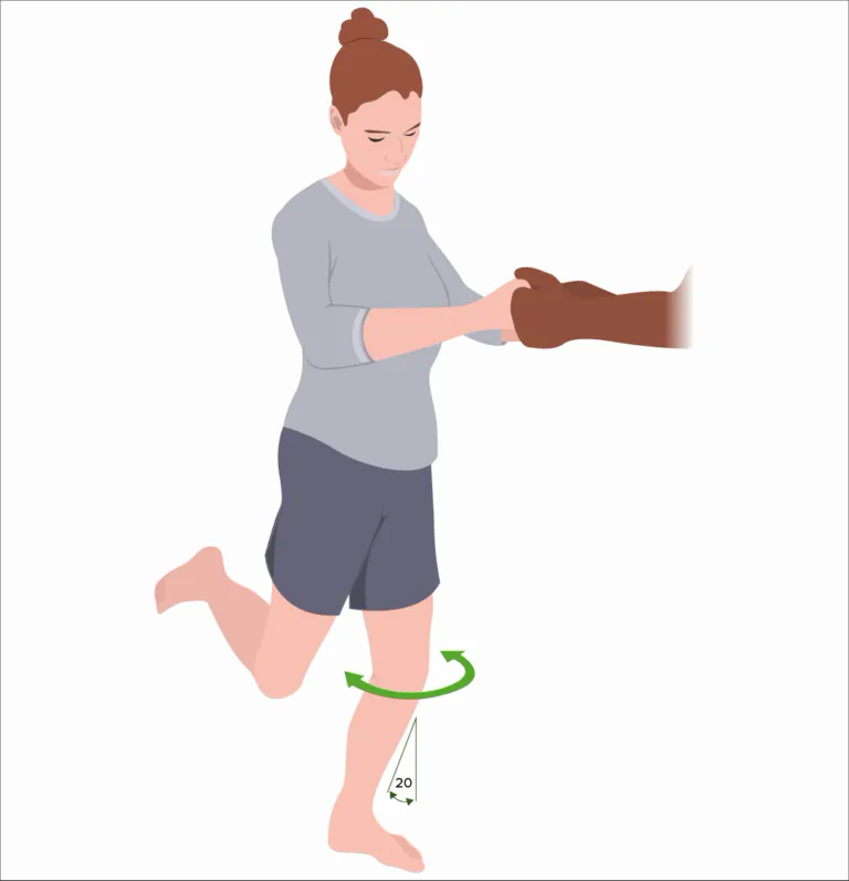 请家人握住被测试者双手,帮助被测试者保持平衡,让测试者在这个姿势下旋转膝盖,一侧膝盖向内旋转,一侧膝盖向外旋转。被测试者在旋转的同时,需要感受是否有疼痛或不适,同时需要注意是否感觉到膝盖的卡住感或不稳定感。