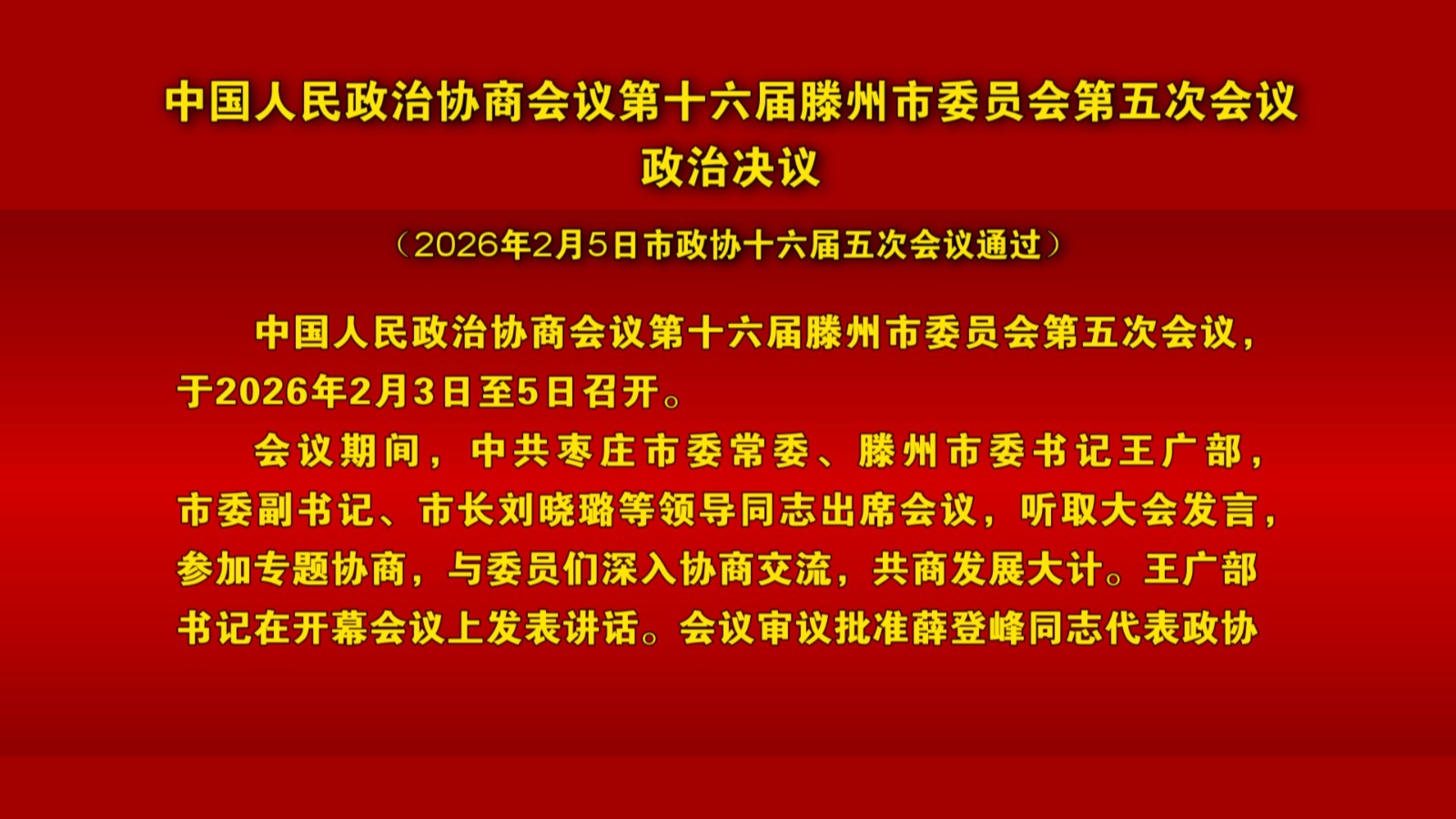 中国人民政治协商会议第十六届滕州市委员会第五次会议政治决议