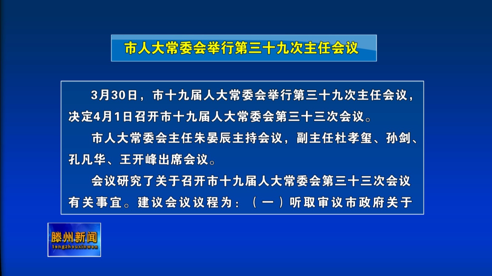 市人大常委会举行第三十九次主任会议