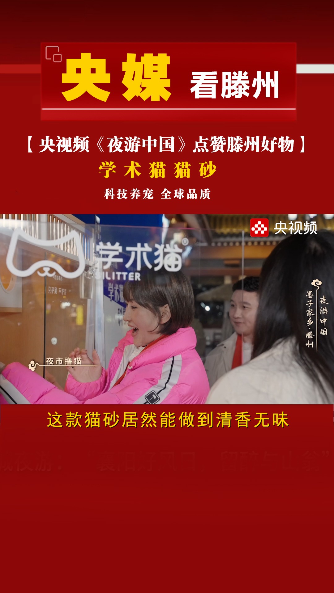 央视频《夜游中国》点赞滕州好物|藏在滕州的全球猫砂巨头——学术猫猫砂,解锁黑科技养宠新方式!